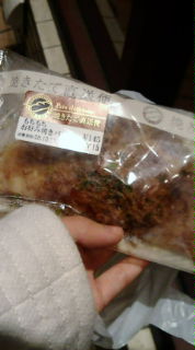 三角形で、半分に折ったお好み焼きの中に焼きそばが・・・・・★